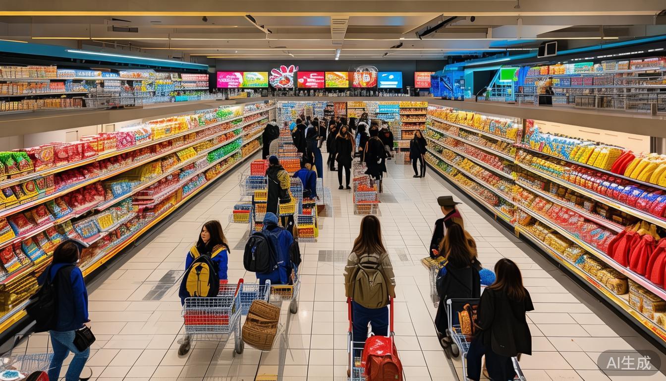 跟着人气的堆积,消费者们正在这里挑选各类节日所需物品。可见节日的消费市场显得极具活力。各类产物琳琅满目,发卖热点此起彼伏,极大地展示出经济取文化并行下的繁荣画面。