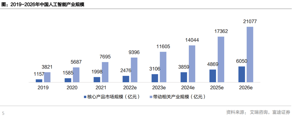 2021年人工智能焦点财产规模估计达到1998亿元规模,估计将于2026年跨越6000亿元,对应2021年到2026年的CAGR为24。8%,带动财产规模跨越2万亿元。跟着越来越多的头部企业登岸本钱市场,市场份额将进一步集中。