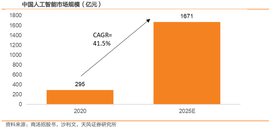 中国是全球人工智能第二大市场,估计增速无望全球第一。按照沙利文的演讲,2020年中国人工智能市场规模为295亿元,估计2025年达到1671亿元,年复合增速为41。5%,此中软件市场规模占比将由2020年的9%提拔至2025年的24。1%。
